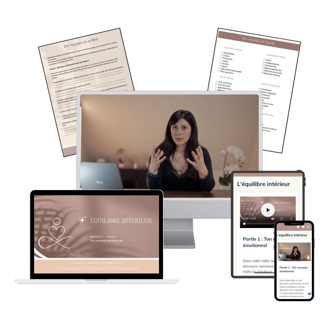 Tu apprendras à décoder ce qui se passe vraiment en toi, à identifier tes déclencheurs et à comprendre que tes émotions ne sont pas tes ennemies mais tes messagères.